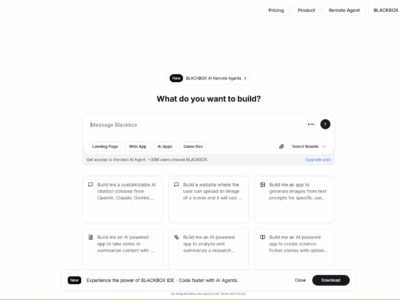 BLACKBOX AI Blackbox AI is a powerful coding assistant designed to boost developer productivity. It helps you ... By Łukasz Niedźwiadek2025-10-20