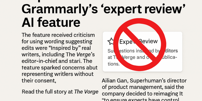 Grammarly is a widely-used tool known for its proficiency in grammar and writing enhancements. In its ever-evolving quest for improvement, Grammarly put the ‘Expert Review’ feature in place. This addition was aimed at providing users with advice imbued with the style and proficiency of experienced writers. However, this well-intended feature soon found itself under scrutiny. The major critique centered around the usage of real personalities’ names without their explicit consent, resulting in a considerable backlash from the unwittingly implicated individuals.