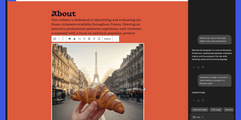 Now, there’s a new tenant in the WordPress site editor’s sidebar: our friendly AI assistant. This versatile tool can perform tasks such as editing and translating text, getting crafty with images using Google’s Nano Banana and even refreshing your site’s look by changing fonts or spinning up new pages. In essence, it’s a comprehensive site management package designed to take your experience to the next level.